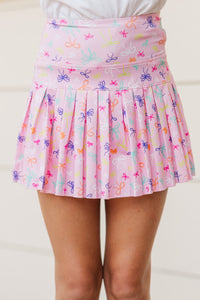 Girls: The Sadie Pink Bow Print Skort