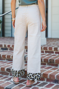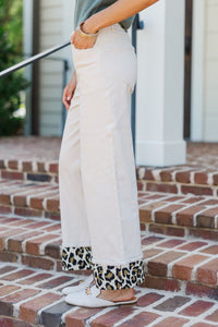 {"id":7418150027322,"title":"Caught In The Wild Cream Leopard Wide Leg Pants","handle":"caught-in-the-wild-cream-leopard-wide-leg-pants","description":"\u003cp\u003eThese wide-leg pants are anything but basic! The soft cream denim gets a bold twist with fierce leopard-print cuffs that peek out in the cutest way. They’ve got just the right amount of stretch and a flattering high-rise fit you’ll want to wear on repeat. Pair them with sneakers or loafers for an effortlessly cool statement look.\u003c\/p\u003e\n\u003cul\u003e\n\u003cli\u003eHigh Waisted\u003c\/li\u003e\n\u003cli\u003eCuffed Hemline\u003c\/li\u003e\n\u003cli\u003eLeopard Print Cuffing\u003c\/li\u003e\n\u003cli\u003eMaterial has no amount of stretch\u003c\/li\u003e\n\u003c\/ul\u003e\n\u003cp\u003ePoppy is wearing the small. \u003c\/p\u003e","published_at":"2025-07-16T08:00:13-04:00","created_at":"2025-06-18T13:27:43-04:00","vendor":"Shop the Mint","type":"","tags":["All Size Available","Bottoms","Clothing","Color_White","DetailedCategory_Pants","FallTransition","In Stock","MainCategory_Bottoms","NA Date_07\/16\/2025","NON_NEW_ARRIVAL","Occasion_Everyday","Pattern_Leopard","Price_$50.00 - $74.99","Product Photos","Regular Price","Reorder","Season_Fall","ShiftingSeasons","Site Visible","Size_Large","Size_Medium","Size_Small","sub25","Womens"],"price":6000,"price_min":6000,"price_max":6000,"available":true,"price_varies":false,"compare_at_price":null,"compare_at_price_min":0,"compare_at_price_max":0,"compare_at_price_varies":false,"variants":[{"id":40911203303482,"title":"Small \/ Cream","option1":"Small","option2":"Cream","option3":null,"sku":"120441-WHT-SM","requires_shipping":true,"taxable":true,"featured_image":null,"available":true,"name":"Caught In The Wild Cream Leopard Wide Leg Pants - Small \/ Cream","public_title":"Small \/ Cream","options":["Small","Cream"],"price":6000,"weight":680,"compare_at_price":null,"inventory_management":"shopify","barcode":"120441-WHT-SM","requires_selling_plan":false,"selling_plan_allocations":[],"quantity_rule":{"min":1,"max":null,"increment":1}},{"id":40919807361082,"title":"Medium \/ Cream","option1":"Medium","option2":"Cream","option3":null,"sku":"120441-WHT-MD","requires_shipping":true,"taxable":true,"featured_image":null,"available":true,"name":"Caught In The Wild Cream Leopard Wide Leg Pants - Medium \/ Cream","public_title":"Medium \/ Cream","options":["Medium","Cream"],"price":6000,"weight":703,"compare_at_price":null,"inventory_management":"shopify","barcode":"120441-WHT-MD","requires_selling_plan":false,"selling_plan_allocations":[],"quantity_rule":{"min":1,"max":null,"increment":1}},{"id":40919807393850,"title":"Large \/ Cream","option1":"Large","option2":"Cream","option3":null,"sku":"120441-WHT-LG","requires_shipping":true,"taxable":true,"featured_image":null,"available":true,"name":"Caught In The Wild Cream Leopard Wide Leg Pants - Large \/ Cream","public_title":"Large \/ Cream","options":["Large","Cream"],"price":6000,"weight":726,"compare_at_price":null,"inventory_management":"shopify","barcode":"120441-WHT-LG","requires_selling_plan":false,"selling_plan_allocations":[],"quantity_rule":{"min":1,"max":null,"increment":1}}],"images":["\/\/shopthemint.com\/cdn\/shop\/files\/120441.Caught-In-The-Wild-Cream-Leopard-Wide-Leg-Pants__copy_3.jpg?v=1752520660","\/\/shopthemint.com\/cdn\/shop\/files\/120441.Caught-In-The-Wild-Cream-Leopard-Wide-Leg-Pants.jpg?v=1752520660","\/\/shopthemint.com\/cdn\/shop\/files\/120441.Caught-In-The-Wild-Cream-Leopard-Wide-Leg-Pants__copy_1.jpg?v=1752520660","\/\/shopthemint.com\/cdn\/shop\/files\/120441.Caught-In-The-Wild-Cream-Leopard-Wide-Leg-Pants__copy_2.jpg?v=1752520659"],"featured_image":"\/\/shopthemint.com\/cdn\/shop\/files\/120441.Caught-In-The-Wild-Cream-Leopard-Wide-Leg-Pants__copy_3.jpg?v=1752520660","options":["Size","Color"],"media":[{"alt":null,"id":23092669349946,"position":1,"preview_image":{"aspect_ratio":0.667,"height":3000,"width":2000,"src":"\/\/shopthemint.com\/cdn\/shop\/files\/120441.Caught-In-The-Wild-Cream-Leopard-Wide-Leg-Pants__copy_3.jpg?v=1752520660"},"aspect_ratio":0.667,"height":3000,"media_type":"image","src":"\/\/shopthemint.com\/cdn\/shop\/files\/120441.Caught-In-The-Wild-Cream-Leopard-Wide-Leg-Pants__copy_3.jpg?v=1752520660","width":2000},{"alt":null,"id":23092669382714,"position":2,"preview_image":{"aspect_ratio":0.667,"height":3000,"width":2000,"src":"\/\/shopthemint.com\/cdn\/shop\/files\/120441.Caught-In-The-Wild-Cream-Leopard-Wide-Leg-Pants.jpg?v=1752520660"},"aspect_ratio":0.667,"height":3000,"media_type":"image","src":"\/\/shopthemint.com\/cdn\/shop\/files\/120441.Caught-In-The-Wild-Cream-Leopard-Wide-Leg-Pants.jpg?v=1752520660","width":2000},{"alt":null,"id":23092669284410,"position":3,"preview_image":{"aspect_ratio":0.667,"height":3000,"width":2000,"src":"\/\/shopthemint.com\/cdn\/shop\/files\/120441.Caught-In-The-Wild-Cream-Leopard-Wide-Leg-Pants__copy_1.jpg?v=1752520660"},"aspect_ratio":0.667,"height":3000,"media_type":"image","src":"\/\/shopthemint.com\/cdn\/shop\/files\/120441.Caught-In-The-Wild-Cream-Leopard-Wide-Leg-Pants__copy_1.jpg?v=1752520660","width":2000},{"alt":null,"id":23092669317178,"position":4,"preview_image":{"aspect_ratio":0.667,"height":3000,"width":2000,"src":"\/\/shopthemint.com\/cdn\/shop\/files\/120441.Caught-In-The-Wild-Cream-Leopard-Wide-Leg-Pants__copy_2.jpg?v=1752520659"},"aspect_ratio":0.667,"height":3000,"media_type":"image","src":"\/\/shopthemint.com\/cdn\/shop\/files\/120441.Caught-In-The-Wild-Cream-Leopard-Wide-Leg-Pants__copy_2.jpg?v=1752520659","width":2000}],"requires_selling_plan":false,"selling_plan_groups":[],"content":"\u003cp\u003eThese wide-leg pants are anything but basic! The soft cream denim gets a bold twist with fierce leopard-print cuffs that peek out in the cutest way. They’ve got just the right amount of stretch and a flattering high-rise fit you’ll want to wear on repeat. Pair them with sneakers or loafers for an effortlessly cool statement look.\u003