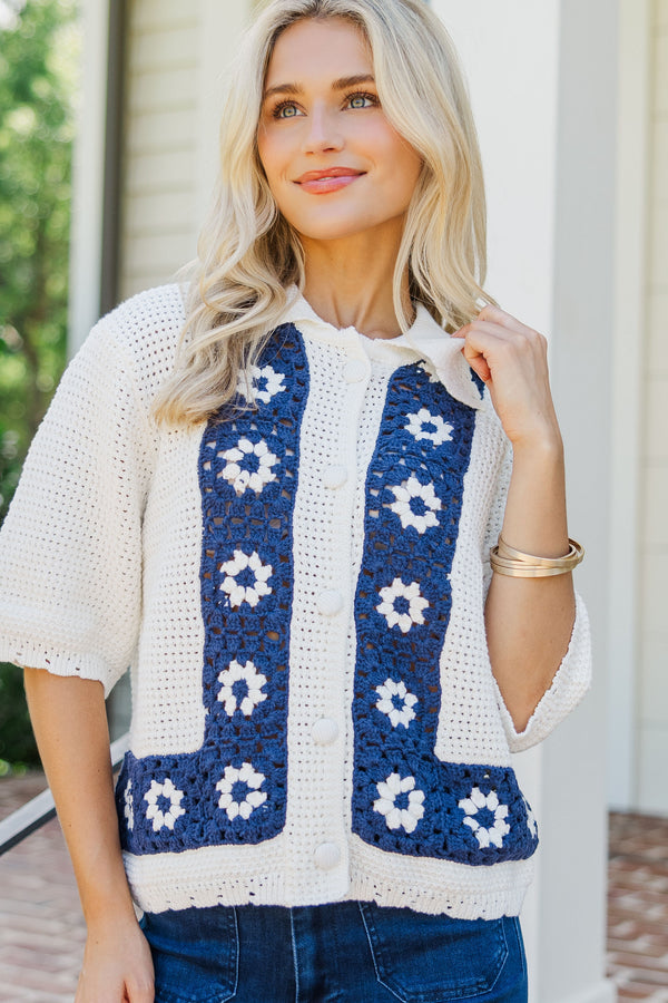 All Set To Shine Navy Floral Sweater