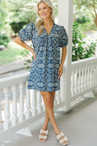 Designed For Joy Navy Eyelet Pleated Dress