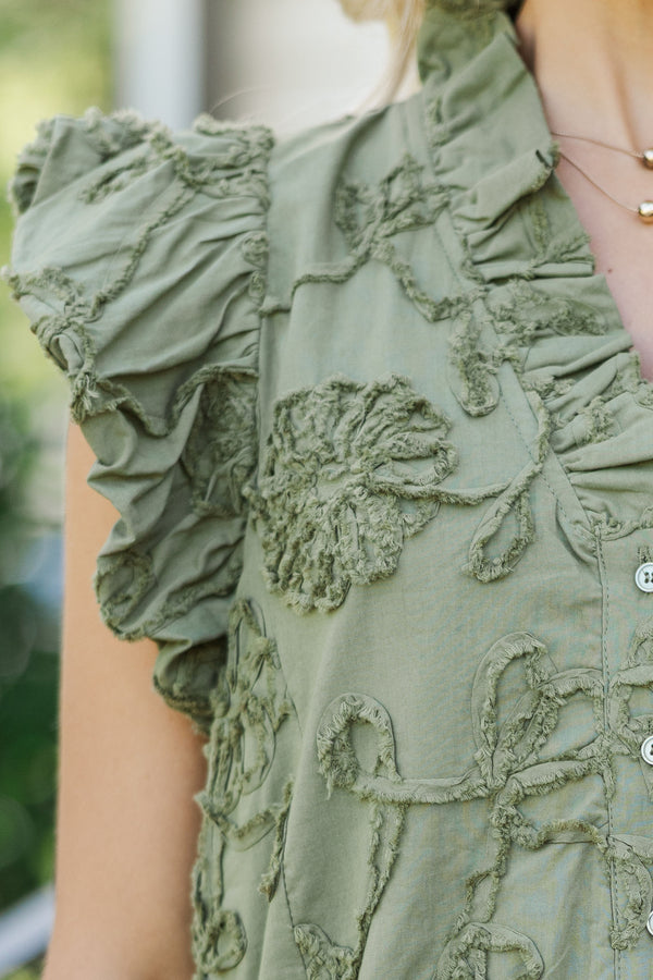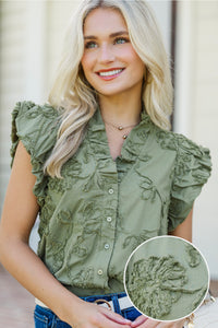 {"id":7415177674810,"title":"Endless Day Olive Embroidered Blouse","handle":"endless-day-olive-embroidered-blouse","description":"\u003cp\u003eThis olive blouse is full of texture and charm! The tonal floral embroidery and raw-edge detailing give it an elevated, boutique feel, while the flutter sleeves and ruffled neckline keep it sweet and feminine. The button front makes it easy to style tucked or untucked—either way, it’s a standout! Pair it with your favorite denim for a look that’s effortlessly cute.\u003c\/p\u003e\n\u003cul\u003e\n\u003cli\u003eRuffled Details\u003c\/li\u003e\n\u003cli\u003eFlutter Sleeves\u003c\/li\u003e\n\u003cli\u003eButton-Up Closures \u003c\/li\u003e\n\u003cli\u003eV-Neckline\u003c\/li\u003e\n\u003cli\u003eEmbroidered Flowers\u003c\/li\u003e\n\u003cli\u003eMaterial has no amount of stretch\u003c\/li\u003e\n\u003c\/ul\u003e\n\u003cp\u003ePoppy is wearing the small.\u003c\/p\u003e","published_at":"2025-07-23T08:00:09-04:00","created_at":"2025-06-09T17:20:49-04:00","vendor":"Shop the Mint","type":"","tags":["Clothing","Color_Green","DetailedCategory_Blouse","DetailedCategory_Short Sleeve","Feature_Embroidered","Feature_Ruffle Sleeve","MainCategory_Tops","NA Date_07\/23\/2025","Neckline_V Neck","NON_NEW_ARRIVAL","Occasion_Everyday","Pattern Floral","Price_$50.00 - $74.99","Product Photos","Regular Price","Reorder","Season_Fall","ShiftingSeasons","Sign Up For Reorder","Site Visible","sub25","Tops","TRUE_OUT_OF_STOCK","Womens"],"price":6000,"price_min":6000,"price_max":6000,"available":false,"price_varies":false,"compare_at_price":null,"compare_at_price_min":0,"compare_at_price_max":0,"compare_at_price_varies":false,"variants":[{"id":40899971416122,"title":"Small \/ Green","option1":"Small","option2":"Green","option3":null,"sku":"120649-GRN-SM","requires_shipping":true,"taxable":true,"featured_image":null,"available":false,"name":"Endless Day Olive Embroidered Blouse - Small \/ Green","public_title":"Small \/ Green","options":["Small","Green"],"price":6000,"weight":0,"compare_at_price":null,"inventory_management":"shopify","barcode":"120649-GRN-SM","requires_selling_plan":false,"selling_plan_allocations":[],"quantity_rule":{"min":1,"max":null,"increment":1}},{"id":40916315865146,"title":"Medium \/ Green","option1":"Medium","option2":"Green","option3":null,"sku":"120649-GRN-MD","requires_shipping":true,"taxable":true,"featured_image":null,"available":false,"name":"Endless Day Olive Embroidered Blouse - Medium \/ Green","public_title":"Medium \/ Green","options":["Medium","Green"],"price":6000,"weight":0,"compare_at_price":null,"inventory_management":"shopify","barcode":"120649-GRN-MD","requires_selling_plan":false,"selling_plan_allocations":[],"quantity_rule":{"min":1,"max":null,"increment":1}},{"id":40916315897914,"title":"Large \/ Green","option1":"Large","option2":"Green","option3":null,"sku":"120649-GRN-LG","requires_shipping":true,"taxable":true,"featured_image":null,"available":false,"name":"Endless Day Olive Embroidered Blouse - Large \/ Green","public_title":"Large \/ Green","options":["Large","Green"],"price":6000,"weight":0,"compare_at_price":null,"inventory_management":"shopify","barcode":"120649-GRN-LG","requires_selling_plan":false,"selling_plan_allocations":[],"quantity_rule":{"min":1,"max":null,"increment":1}}],"images":["\/\/shopthemint.com\/cdn\/shop\/files\/763649983-artboard-33-2x-100.jpg?v=1753132461","\/\/shopthemint.com\/cdn\/shop\/files\/120649.Endless-Day-Olive-Embroidered-Blouse__copy_2.jpg?v=1753132461","\/\/shopthemint.com\/cdn\/shop\/files\/120649.Endless-Day-Olive-Embroidered-Blouse.jpg?v=1753132461","\/\/shopthemint.com\/cdn\/shop\/files\/120649.Endless-Day-Olive-Embroidered-Blouse__copy_1.jpg?v=1753132461","\/\/shopthemint.com\/cdn\/shop\/files\/120649.Endless-Day-Olive-Embroidered-Blouse__copy_4.jpg?v=1753132461"],"featured_image":"\/\/shopthemint.com\/cdn\/shop\/files\/763649983-artboard-33-2x-100.jpg?v=1753132461","options":["Size","Color"],"media":[{"alt":null,"id":23109457707066,"position":1,"preview_image":{"aspect_ratio":0.666,"height":1601,"width":1067,"src":"\/\/shopthemint.com\/cdn\/shop\/files\/763649983-artboard-33-2x-100.jpg?v=1753132461"},"aspect_ratio":0.666,"height":1601,"media_type":"image","src":"\/\/shopthemint.com\/cdn\/shop\/files\/763649983-artboard-33-2x-100.jpg?v=1753132461","width":1067},{"alt":null,"id":23108992106554,"position":2,"preview_image":{"aspect_ratio":0.667,"height":3000,"width":2000,"src":"\/\/shopthemint.com\/cdn\/shop\/files\/120649.Endless-Day-Olive-Embroidered-Blouse__copy_2.jpg?v=1753132461"},"aspect_ratio":0.667,"height":3000,"media_type":"image","src":"\/\/shopthemint.com\/cdn\/shop\/files\/120649.Endless-Day-Olive-Embroidered-Blouse__copy_2.jpg?v=1753132461","width":2000},{"alt":null,"id":23108992204858,"position":3,"preview_image":{"aspect_ratio":0.667,"height":3000,"width":2000,"src":"\/\/shopthemint.com\/cdn\/shop\/files\/120649.Endless-Day-Olive-Embroidered-Blouse.jpg?v=1753132461"},"aspect_ratio":0.667,"height":3000,"media_type":"image","src":"\/\/shopthemint.com\/cdn\/shop\/files\/120649.Endless-Day-Olive-Embroidered-Blouse.jpg?v=1753132461","width":2000},{"alt":null,"id":23108992237626,"position":4,"preview_image":{"aspect_ratio":0.667,"height":3000,"width":2000,"src":"\/\/shopthemint.com\/cdn\/shop\/files\/120649.Endless-Day-Olive-Embroidered-Blouse__copy_1.jpg?v=1753132461"},"aspect_ratio":0.667,"height":3000,"media_type":"image","src":"\/\/shopthemint.com\/cdn\/shop\/files\/120649.Endless-Day-Olive-Embroidered-Blouse__copy_1.jpg?v=1753132461","width":2000},{"alt":null,"id":23108992172090,"position":5,"preview_image":{"aspect_ratio":0.667,"height":3000,"width":2000,"src":"\/\/shopthemint.com\/cdn\/shop\/files\/120649.Endless-Day-Olive-Embroidered-Blouse__copy_4.jpg?v=1753132461"},"aspect_ratio":0.667,"height":3000,"media_type":"image","src":"\/\/shopthemint.com\/cdn\/shop\/files\/120649.Endless-Day-Olive-Embroidered-Blouse__copy_4.jpg?v=1753132461","width":2000}],"requires_sel
