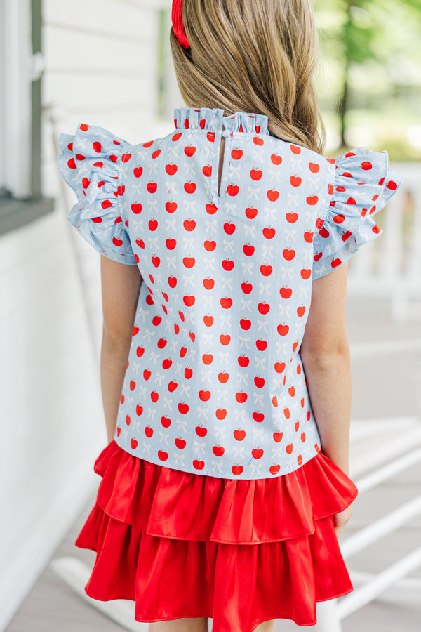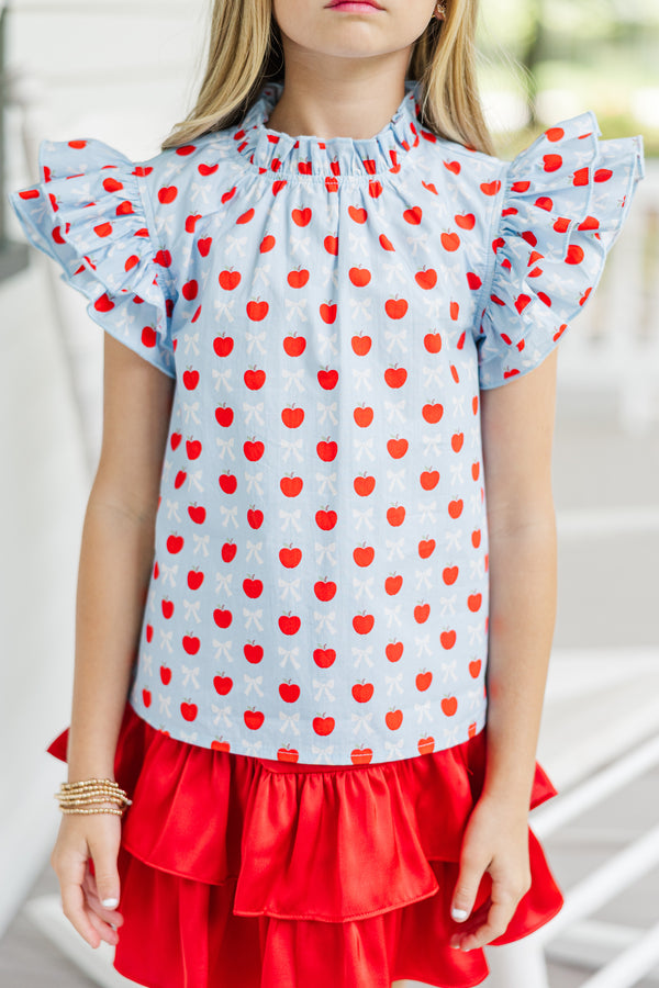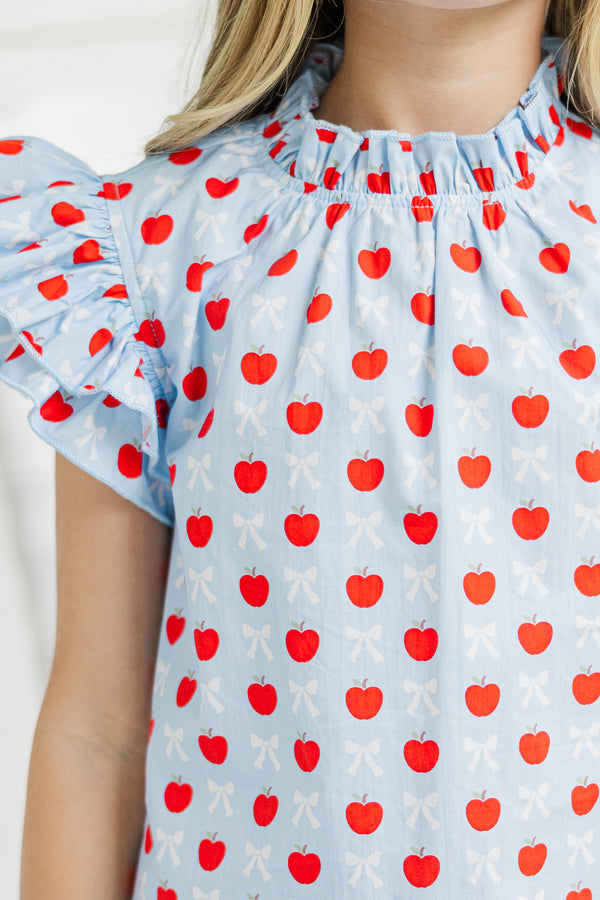 Girls: A True Beauty Light Blue Bows & Apples Print Blouse