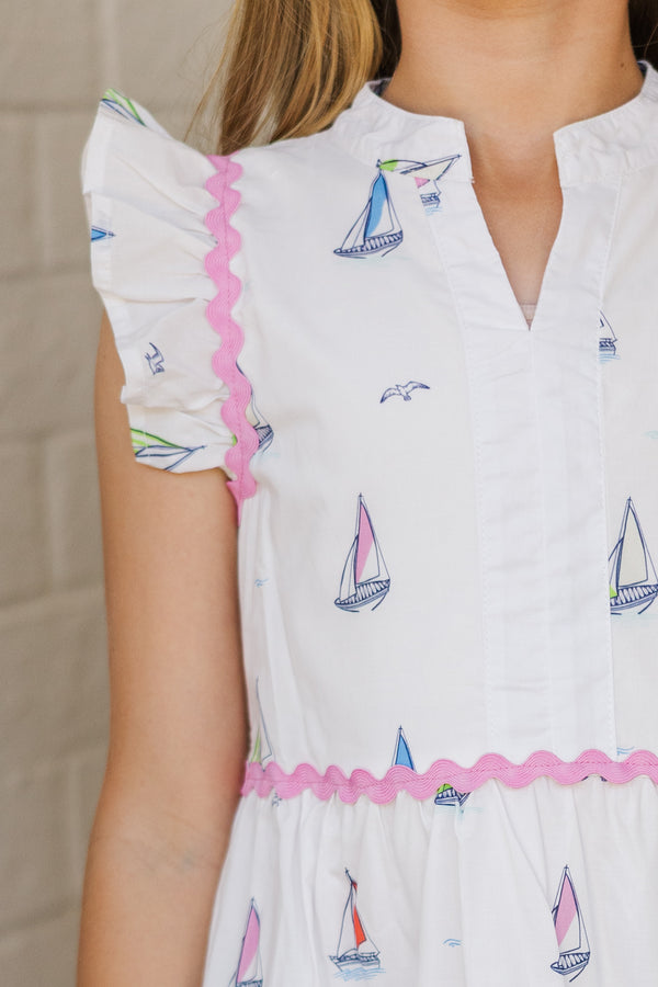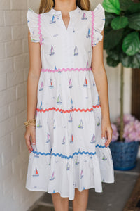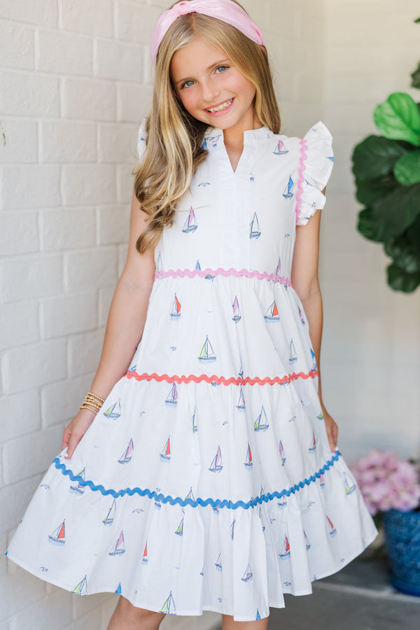 Girls: Created Beauty Cream White Sailboat Midi Dress