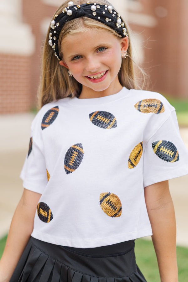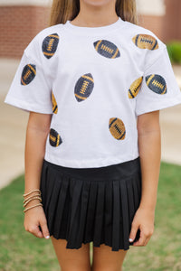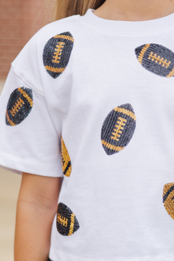 Girls: First Down Fun Black & Gold Football Sequin Top