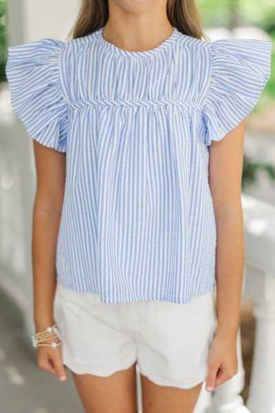 {"id":7408279879738,"title":"Girls: The Ali Blue Striped Blouse","handle":"girls-the-ali-blue-striped-blouse","description":"\u003cp data-end=\"446\" data-start=\"108\"\u003eHow precious is this blue-striped top?! We are loving the classic seersucker fabric paired with those statement flutter sleeves—so sweet and girly! The gathered bodice adds a comfy, relaxed fit that's perfect for playdates, parties, and everything in between. Style it with a cute skirt or denim shorts for a look that’s full of sunshine!\u003c\/p\u003e\n\u003cul\u003e\n\u003cli data-end=\"502\" data-start=\"463\"\u003eRounded neckline with gathered detail\u003c\/li\u003e\n\u003cli data-end=\"532\" data-start=\"505\"\u003eRelaxed, flowy silhouette\u003c\/li\u003e\n\u003cli data-end=\"574\" data-start=\"535\"\u003eFlutter short sleeves for added flair\u003c\/li\u003e\n\u003cli data-end=\"628\" data-start=\"577\"\u003eLightweight, non-stretch cotton seersucker fabric\u003c\/li\u003e\n\u003cli data-end=\"628\" data-start=\"577\"\u003eMaterial has no amount of stretch\u003c\/li\u003e\n\u003c\/ul\u003e\n\u003cp data-is-only-node=\"\" data-is-last-node=\"\" data-end=\"656\" data-start=\"630\"\u003eAnnistyn is wearing the size 7\/8.\u003c\/p\u003e","published_at":"2025-07-15T08:00:22-04:00","created_at":"2025-05-16T16:23:13-04:00","vendor":"Shop the Mint","type":"","tags":["BackToSchool","bis-hidden","Color_Blue","DetailedCategory_Girls Blouse","Girls","Girls Clothing","Girls Tops","In Stock","MainCategory_Girls Tops","NA Date_07\/15\/2025","NON_NEW_ARRIVAL","Pattern_striped","PicturePerfect","Price_$25.00 to $49.99","Product Photos","Regular Price","Season_Summer","Site Visable","Site Visible","Size_(5\/6)","Size_(7\/8)","Size_(8\/10)","sub25","TRUE_OUT_OF_STOCK"],"price":3200,"price_min":3200,"price_max":3200,"available":true,"price_varies":false,"compare_at_price":null,"compare_at_price_min":0,"compare_at_price_max":0,"compare_at_price_varies":false,"variants":[{"id":40873805152314,"title":"(5\/6) \/ Blue","option1":"(5\/6)","option2":"Blue","option3":null,"sku":"118869-BLU-XS","requires_shipping":true,"taxable":true,"featured_image":null,"available":true,"name":"Girls: The Ali Blue Striped Blouse - (5\/6) \/ Blue","public_title":"(5\/6) \/ Blue","options":["(5\/6)","Blue"],"price":3200,"weight":91,"compare_at_price":null,"inventory_management":"shopify","barcode":"118869-BLU-XS","requires_selling_plan":false,"selling_plan_allocations":[],"quantity_rule":{"min":1,"max":null,"increment":1}},{"id":40926164615226,"title":"(7\/8) \/ Blue","option1":"(7\/8)","option2":"Blue","option3":null,"sku":"118869-BLU-SM","requires_shipping":true,"taxable":true,"featured_image":null,"available":true,"name":"Girls: The Ali Blue Striped Blouse - (7\/8) \/ Blue","public_title":"(7\/8) \/ Blue","options":["(7\/8)","Blue"],"price":3200,"weight":113,"compare_at_price":null,"inventory_management":"shopify","barcode":"118869-BLU-SM","requires_selling_plan":false,"selling_plan_allocations":[],"quantity_rule":{"min":1,"max":null,"increment":1}},{"id":40926164647994,"title":"(8\/10) \/ Blue","option1":"(8\/10)","option2":"Blue","option3":null,"sku":"118869-BLU-MD","requires_shipping":true,"taxable":true,"featured_image":null,"available":true,"name":"Girls: The Ali Blue Striped Blouse - (8\/10) \/ Blue","public_title":"(8\/10) \/ Blue","options":["(8\/10)","Blue"],"price":3200,"weight":136,"compare_at_price":null,"inventory_management":"shopify","barcode":"118869-BLU-MD","requires_selling_plan":false,"selling_plan_allocations":[],"quantity_rule":{"min":1,"max":null,"increment":1}},{"id":40926164680762,"title":"(10\/12) \/ Blue","option1":"(10\/12)","option2":"Blue","option3":null,"sku":"118869-BLU-LG","requires_shipping":true,"taxable":true,"featured_image":null,"available":false,"name":"Girls: The Ali Blue Striped Blouse - (10\/12) \/ Blue","public_title":"(10\/12) \/ Blue","options":["(10\/12)","Blue"],"price":3200,"weight":159,"compare_at_price":null,"inventory_management":"shopify","barcode":"118869-BLU-LG","requires_selling_plan":false,"selling_plan_allocations":[],"quantity_rule":{"min":1,"max":null,"increment":1}},{"id":40926164713530,"title":"(12\/14) \/ Blue","option1":"(12\/14)","option2":"Blue","option3":null,"sku":"118869-BLU-XL","requires_shipping":true,"taxable":true,"featured_image":null,"available":false,"name":"Girls: The Ali Blue Striped Blouse - (12\/14) \/ Blue","public_title":"(12\/14) \/ Blue","options":["(12\/14)","Blue"],"price":3200,"weight":181,"compare_at_price":null,"inventory_management":"shopify","barcode":"118869-BLU-XL","requires_selling_plan":false,"selling_plan_allocations":[],"quantity_rule":{"min":1,"max":null,"increment":1}},{"id":40926164746298,"title":"(14\/16) \/ Blue","option1":"(14\/16)","option2":"Blue","option3":null,"sku":"118869-BLU-XXL","requires_shipping":true,"taxable":true,"featured_image":null,"available":false,"name":"Girls: The Ali Blue Striped Blouse - (14\/16) \/ Blue","public_title":"(14\/16) \/ Blue","options":["(14\/16)","Blue"],"price":3200,"weight":204,"compare_at_price":null,"inventory_management":"shopify","barcode":"118869-BLU-XXL","requires_selling_plan":false,"selling_plan_allocations":[],"quantity_rule":{"min":1,"max":null,"increment":1}}],"images":["\/\/shopthemint.com\/cdn\/shop\/files\/757425173-artboard-37-2x-100.jpg?v=1751473072","\/\/shopthemint.com\/cdn\/shop\/files\/118869.Girls--The-Ali-Blue-Striped-Blouse_full.jpg?v=1751473072","\/\/shopthemint.com\/cdn\/shop\/files\/118869.Girls--The-Ali-Blue-Striped-Blouse_full_22c79228-9581-417a-9d99-9371ec0ba207.jpg?v=1751473072","\/\/shopthemint.com\/cdn\/shop\/files\/118869.Girls--The-Ali-Blue-Striped-Blouse_full_4b561622-f118-4607-abe8-09e0f4905ab3.jpg?v=1751473072","\/\/shopthemint.com\/cdn\/shop\/files\/118869.Girls--The-Ali-Blue-Striped-Blouse_full_26a2ce3d-2f02-4f4f-82f8-d1fcbb0aea50.jpg?v=1751473072"],"featured_image":"\/\/shopthemint.com\/cdn\/shop\/files\/757425173-artboard-37-2x-100.jpg?v=1751473072","options":["Size","Colo