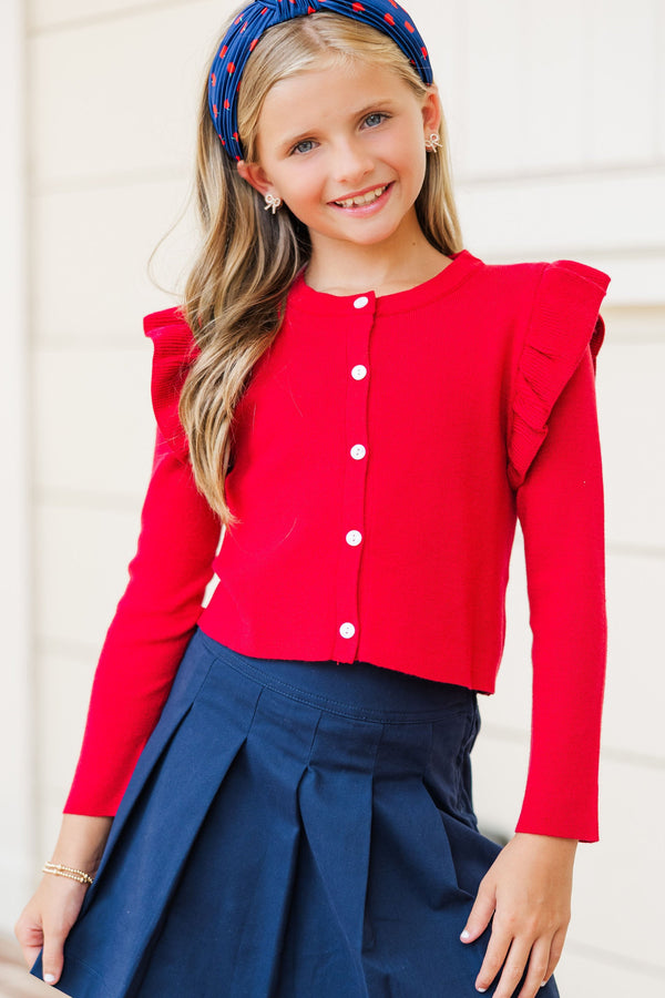 Girls: The Amari Red Ruffled Cardigan