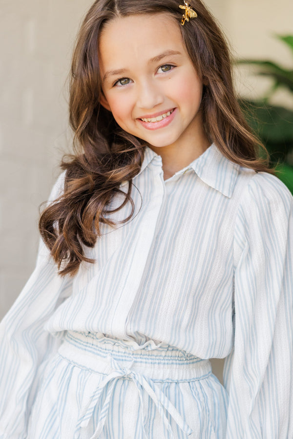 {"id":7411959463994,"title":"Girls: The Emerly Light Blue Striped Blouse","handle":"girls-the-emerly-light-blue-striped-blouse","description":"\u003cp\u003eThis puff-sleeve button-down is giving major coastal cool vibes! The light blue and white stripes feel fresh and breezy, perfect for sunny days and seaside strolls. We love the sweet puff sleeves and subtle texture that make this top feel extra special. Pair it with the matching shorts for an effortlessly cute look!\u003c\/p\u003e\n\u003cul\u003e\n\u003cli\u003eButton Down Front\u003c\/li\u003e\n\u003cli\u003eCollared Neckline\u003c\/li\u003e\n\u003cli\u003e3\/4 Puff Sleeves\u003c\/li\u003e\n\u003cli\u003eLight Blue Striped Pattern\u003c\/li\u003e\n\u003cli\u003eMaterial has no amount of stretch\u003c\/li\u003e\n\u003c\/ul\u003e\n\u003cp\u003eElenore is wearing the 5\/6. \u003c\/p\u003e","published_at":"2025-06-03T08:00:11-04:00","created_at":"2025-05-28T11:28:07-04:00","vendor":"Shop the Mint","type":"","tags":["bis-hidden","Color_Blue","DetailedCategory_Girls Blouse","Feature_Button Down","Feature_Puff Sleeve","Girls","Girls Clothing","Girls Tops","Girls.BF.SSTops.Dresses.2025","Girls.BF.SSTops2025","Girls152030","GirlsSale$20","In Stock","MainCategory_Girls Tops","NA Date_06\/03\/2025","Neckline_Collared","NON_NEW_ARRIVAL","Pattern_Striped","Price_$25.00 to $49.99","Product Photos","Regular Price","Season_Summer","Site Visible","Size_(10\/12)","Size_(12\/14)","Size_(14\/16)","Size_(7\/8)","Size_(8\/10)","Sleeve_3\/4","Yours\u0026hers"],"price":3600,"price_min":3600,"price_max":3600,"available":true,"price_varies":false,"compare_at_price":null,"compare_at_price_min":0,"compare_at_price_max":0,"compare_at_price_varies":false,"variants":[{"id":40887826219066,"title":"(5\/6) \/ Blue","option1":"(5\/6)","option2":"Blue","option3":null,"sku":"118852-BLU-XS","requires_shipping":true,"taxable":true,"featured_image":null,"available":false,"name":"Girls: The Emerly Light Blue Striped Blouse - (5\/6) \/ Blue","public_title":"(5\/6) \/ Blue","options":["(5\/6)","Blue"],"price":3600,"weight":113,"compare_at_price":null,"inventory_management":"shopify","barcode":"118852-BLU-XS","requires_selling_plan":false,"selling_plan_allocations":[],"quantity_rule":{"min":1,"max":null,"increment":1}},{"id":40889297174586,"title":"(7\/8) \/ Blue","option1":"(7\/8)","option2":"Blue","option3":null,"sku":"118852-BLU-SM","requires_shipping":true,"taxable":true,"featured_image":null,"available":true,"name":"Girls: The Emerly Light Blue Striped Blouse - (7\/8) \/ Blue","public_title":"(7\/8) \/ Blue","options":["(7\/8)","Blue"],"price":3600,"weight":136,"compare_at_price":null,"inventory_management":"shopify","barcode":"118852-BLU-SM","requires_selling_plan":false,"selling_plan_allocations":[],"quantity_rule":{"min":1,"max":null,"increment":1}},{"id":40889297207354,"title":"(8\/10) \/ Blue","option1":"(8\/10)","option2":"Blue","option3":null,"sku":"118852-BLU-MD","requires_shipping":true,"taxable":true,"featured_image":null,"available":true,"name":"Girls: The Emerly Light Blue Striped Blouse - (8\/10) \/ Blue","public_title":"(8\/10) \/ Blue","options":["(8\/10)","Blue"],"price":3600,"weight":159,"compare_at_price":null,"inventory_management":"shopify","barcode":"118852-BLU-MD","requires_selling_plan":false,"selling_plan_allocations":[],"quantity_rule":{"min":1,"max":null,"increment":1}},{"id":40889297240122,"title":"(10\/12) \/ Blue","option1":"(10\/12)","option2":"Blue","option3":null,"sku":"118852-BLU-LG","requires_shipping":true,"taxable":true,"featured_image":null,"available":true,"name":"Girls: The Emerly Light Blue Striped Blouse - (10\/12) \/ Blue","public_title":"(10\/12) \/ Blue","options":["(10\/12)","Blue"],"price":3600,"weight":181,"compare_at_price":null,"inventory_management":"shopify","barcode":"118852-BLU-LG","requires_selling_plan":false,"selling_plan_allocations":[],"quantity_rule":{"min":1,"max":null,"increment":1}},{"id":40889297272890,"title":"(12\/14) \/ Blue","option1":"(12\/14)","option2":"Blue","option3":null,"sku":"118852-BLU-XL","requires_shipping":true,"taxable":true,"featured_image":null,"available":true,"name":"Girls: The Emerly Light Blue Striped Blouse - (12\/14) \/ Blue","public_title":"(12\/14) \/ Blue","options":["(12\/14)","Blue"],"price":3600,"weight":204,"compare_at_price":null,"inventory_management":"shopify","barcode":"118852-BLU-XL","requires_selling_plan":false,"selling_plan_allocations":[],"quantity_rule":{"min":1,"max":null,"increment":1}},{"id":40889297305658,"title":"(14\/16) \/ Blue","option1":"(14\/16)","option2":"Blue","option3":null,"sku":"118852-BLU-XXL","requires_shipping":true,"taxable":true,"featured_image":null,"available":true,"name":"Girls: The Emerly Light Blue Striped Blouse - (14\/16) \/ Blue","public_title":"(14\/16) \/ Blue","options":["(14\/16)","Blue"],"price":3600,"weight":227,"compare_at_price":null,"inventory_management":"shopify","barcode":"118852-BLU-XXL","requires_selling_plan":false,"selling_plan_allocations":[],"quantity_rule":{"min":1,"max":null,"increment":1}}],"images":["\/\/shopthemint.com\/cdn\/shop\/files\/118852.118853__copy_1_ee80a976-fcfa-4bd9-9617-8e35566b3b38.jpg?v=1761835069","\/\/shopthemint.com\/cdn\/shop\/files\/118852.118853_7dde3583-d2a9-4e2f-b9d2-ff759ca6b086.jpg?v=1748458078","\/\/shopthemint.com\/cdn\/shop\/files\/118852.Girls--3-quarter-length-puff-sleeve-button-down.jpg?v=1761835073","\/\/shopthemint.com\/cdn\/shop\/files\/118852.Girls--3-quarter-length-puff-sleeve-button-down__copy_2.jpg?v=1761835073","\/\/shopthemint.com\/cdn\/shop\/files\/118852.Girls--3-quarter-length-puff-sleeve-button-down__copy_1.jpg?v=1761835073"],"featured_image":"\/\/shopthemint.com\/cdn\/shop\/files\/118852.118853__copy_1_ee80a976-fcfa-4bd9-9617-8e35566b3b38.jpg?v=1761835069","options":["Size","Color"],"media":[{"alt":null,"id":22979061088314,"position":1,"preview_image":{"aspect_ratio":0.667,"height":2170,"width":1448,"src":"\/\/shopthemint.com\/cdn\/shop\/files\/118852.118853__copy_1_ee80a97