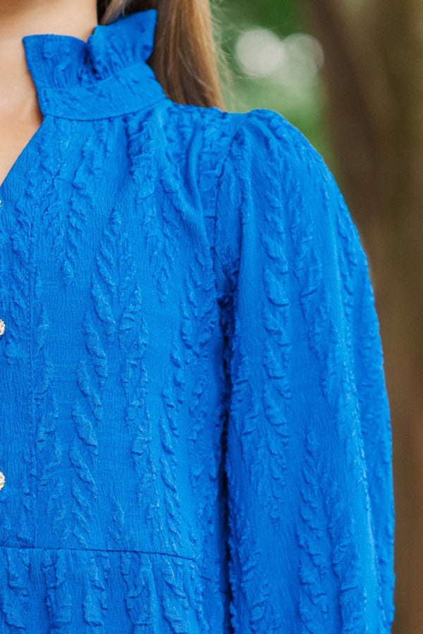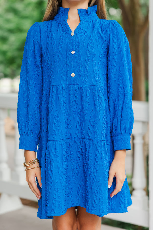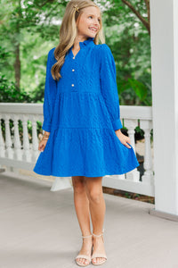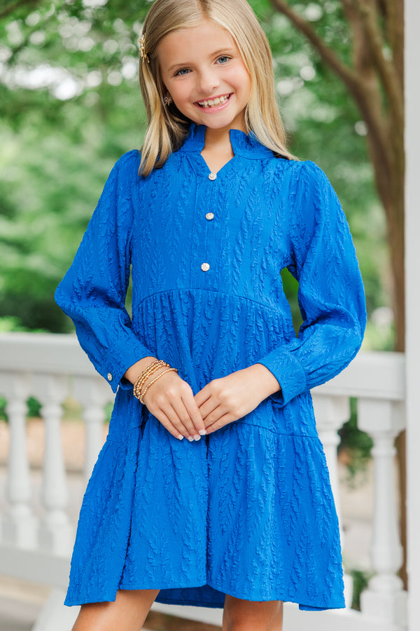 Girls: The Payton Blue Textured Dress