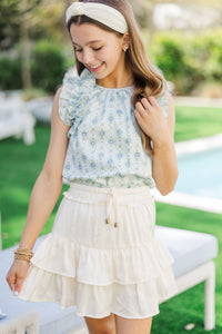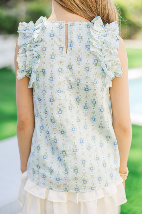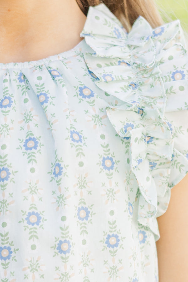 Girls: The Ruby Mint Floral Ruffled Blouse