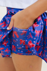 Girls: The Sadie Blue Bows and Stars Print Skort