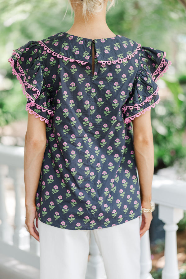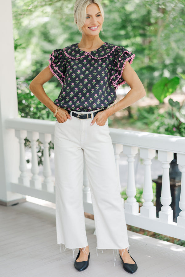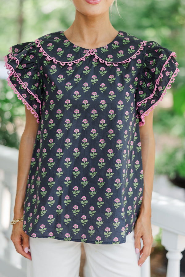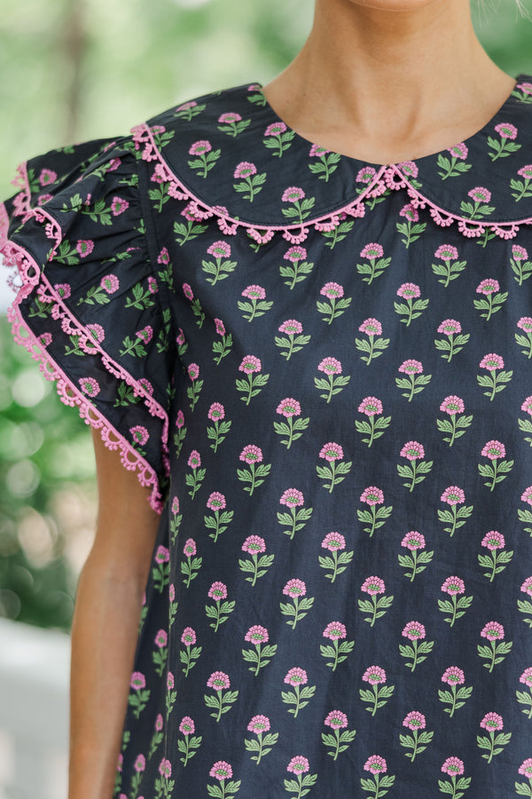 Know It All Black Floral Collared Blouse