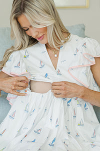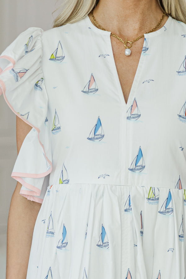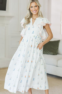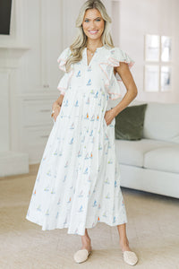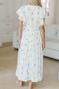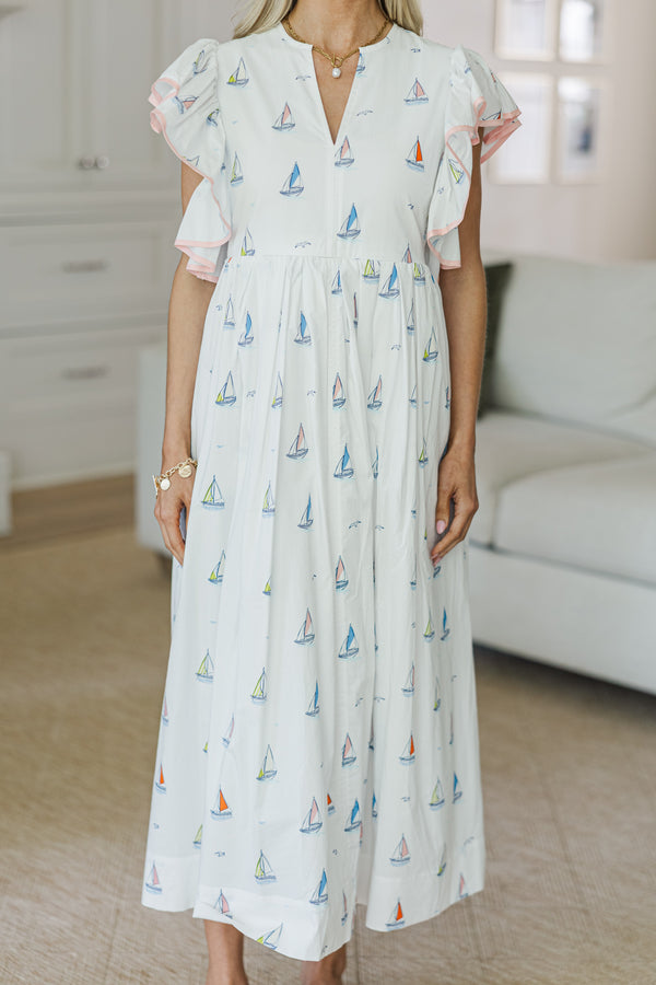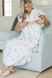 NURSING COLLECTION: Closer Than Ever White Sailboat Midi Dress