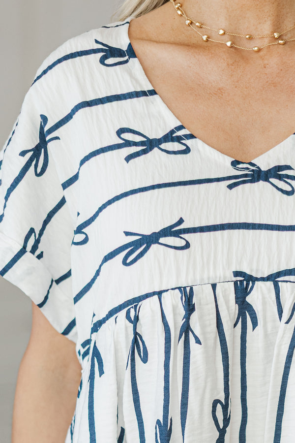 NURSING COLLECTION: Full Of Joy White Bow Print Dress