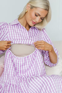 {"id":7429823856698,"title":"NURSING COLLECTION: Love Found Purple Gingham Tiered Midi Dress","handle":"nursing-collection-love-found-purple-gingham-teired-midi-dress","description":"\u003cp\u003eThis purple gingham beauty is giving sweet Southern charm with a modern twist! The tiered midi silhouette and puff sleeves are made for twirling, and the button front is perfect for a classic look that also happens to be nursing-friendly. Pretty \u003cem data-start=\"358\" data-end=\"363\"\u003eand\u003c\/em\u003e practical? We're obsessed!\u003c\/p\u003e\n\u003cul\u003e\n\u003cli\u003eCollared neckline\u003c\/li\u003e\n\u003cli\u003e3\/4 Length Sleeves\u003c\/li\u003e\n\u003cli\u003eTiered Skirt \u003c\/li\u003e\n\u003cli\u003eHidden Zippers \u003c\/li\u003e\n\u003cli\u003eMaterial has no amount of stretch \u003c\/li\u003e\n\u003c\/ul\u003e\n\u003cp\u003eBaileigh is wearing the small. \u003c\/p\u003e","published_at":"2025-07-11T08:00:07-04:00","created_at":"2025-07-10T10:21:53-04:00","vendor":"Shop the Mint","type":"","tags":["Combined","combined_nursing-collection-love-found-tiered-midi-dress","DetailedCategory_Midi Dresses","Dresses","Hemline_Midcalf","HQ","In Stock","MainCategory_Dresses","NA Date_07\/11\/2025","NON_NEW_ARRIVAL","Nursing_Collection","NursingFriendly","paid_nursing","Price_$75.00 to $99.00","Product Photos","Purple_https:\/\/cdn.shopify.com\/s\/files\/1\/0028\/1945\/7082\/files\/Screenshot_2025-07-10_161924.png?v=1752182377","Regular Price","Reorder","Sign Up For Reorder","Site Visible","Size_Large","Size_Medium","Size_Small","Size_X-Large","Size_X-Small","Womens","YGroup_nursing-collection-love-found-tiered-midi-dress"],"price":8100,"price_min":8100,"price_max":8100,"available":true,"price_varies":false,"compare_at_price":null,"compare_at_price_min":0,"compare_at_price_max":0,"compare_at_price_varies":false,"variants":[{"id":40938756603962,"title":"X-Small \/ Purple","option1":"X-Small","option2":"Purple","option3":null,"sku":"120398-PUR-XS","requires_shipping":true,"taxable":true,"featured_image":null,"available":true,"name":"NURSING COLLECTION: Love Found Purple Gingham Tiered Midi Dress - X-Small \/ Purple","public_title":"X-Small \/ Purple","options":["X-Small","Purple"],"price":8100,"weight":544,"compare_at_price":null,"inventory_management":"shopify","barcode":"120398-PUR-XS","requires_selling_plan":false,"selling_plan_allocations":[],"quantity_rule":{"min":1,"max":null,"increment":1}},{"id":40938656792634,"title":"Small \/ Purple","option1":"Small","option2":"Purple","option3":null,"sku":"120398-PUR-SM","requires_shipping":true,"taxable":true,"featured_image":null,"available":true,"name":"NURSING COLLECTION: Love Found Purple Gingham Tiered Midi Dress - Small \/ Purple","public_title":"Small \/ Purple","options":["Small","Purple"],"price":8100,"weight":567,"compare_at_price":null,"inventory_management":"shopify","barcode":"120398-PUR-SM","requires_selling_plan":false,"selling_plan_allocations":[],"quantity_rule":{"min":1,"max":null,"increment":1}},{"id":40938756636730,"title":"Medium \/ Purple","option1":"Medium","option2":"Purple","option3":null,"sku":"120398-PUR-MD","requires_shipping":true,"taxable":true,"featured_image":null,"available":true,"name":"NURSING COLLECTION: Love Found Purple Gingham Tiered Midi Dress - Medium \/ Purple","public_title":"Medium \/ Purple","options":["Medium","Purple"],"price":8100,"weight":590,"compare_at_price":null,"inventory_management":"shopify","barcode":"120398-PUR-MD","requires_selling_plan":false,"selling_plan_allocations":[],"quantity_rule":{"min":1,"max":null,"increment":1}},{"id":40938756669498,"title":"Large \/ Purple","option1":"Large","option2":"Purple","option3":null,"sku":"120398-PUR-LG","requires_shipping":true,"taxable":true,"featured_image":null,"available":true,"name":"NURSING COLLECTION: Love Found Purple Gingham Tiered Midi Dress - Large \/ Purple","public_title":"Large \/ Purple","options":["Large","Purple"],"price":8100,"weight":612,"compare_at_price":null,"inventory_management":"shopify","barcode":"120398-PUR-LG","requires_selling_plan":false,"selling_plan_allocations":[],"quantity_rule":{"min":1,"max":null,"increment":1}},{"id":40938756702266,"title":"X-Large \/ Purple","option1":"X-Large","option2":"Purple","option3":null,"sku":"120398-PUR-XL","requires_shipping":true,"taxable":true,"featured_image":null,"available":true,"name":"NURSING COLLECTION: Love Found Purple Gingham Tiered Midi Dress - X-Large \/ Purple","public_title":"X-Large \/ Purple","options":["X-Large","Purple"],"price":8100,"weight":635,"compare_at_price":null,"inventory_management":"shopify","barcode":"120398-PUR-XL","requires_selling_plan":false,"selling_plan_allocations":[],"quantity_rule":{"min":1,"max":null,"increment":1}},{"id":40938756735034,"title":"XX-Large \/ Purple","option1":"XX-Large","option2":"Purple","option3":null,"sku":"120398-PUR-XXL","requires_shipping":true,"taxable":true,"featured_image":null,"available":false,"name":"NURSING COLLECTION: Love Found Purple Gingham Tiered Midi Dress - XX-Large \/ Purple","public_title":"XX-Large \/ Purple","options":["XX-Large","Purple"],"price":8100,"weight":658,"compare_at_price":null,"inventory_management":"shopify","barcode":"120398-PUR-XXL","requires_selling_plan":false,"selling_plan_allocations":[],"quantity_rule":{"min":1,"max":null,"increment":1}}],"images":["\/\/shopthemint.com\/cdn\/shop\/files\/120398.NURSING-COLLECTION--Love-Found-Purple-Gingham-Tiered-Midi-Dress.jpg?v=1752178366","\/\/shopthemint.com\/cdn\/shop\/files\/120398.NURSING-COLLECTION--Love-Found-Purple-Gingham-Tiered-Midi-Dress__copy_5.jpg?v=1752178432","\/\/shopthemint.com\/cdn\/shop\/files\/120398.NURSING-COLLECTION--Love-Found-Purple-Gingham-Tiered-Midi-Dress__copy_4.jpg?v=1752178432","\/\/shopthemint.com\/cdn\/shop\/files\/120398.NURSING-COLLECTION--Love-Found-Purple-Gingham-Tiered-Midi-Dress__copy_1.jpg?v=1752178432","\/\/shopthemint.com\/cdn\/shop\/files\/120398.NURSING-COLLECTION--Love-Found-Purple-Gingham-Tiere