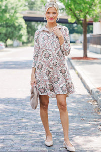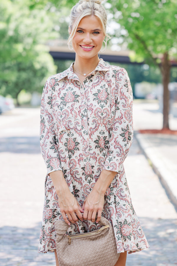Share Your Story Cream Damask Shirt Dress