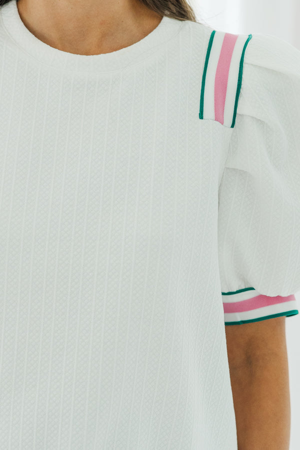 {"id":7379100270650,"title":"Simple Wishes White Textured Blouse","handle":"simple-wishes-white-textured-blouse","description":"\u003cp\u003eThis top is giving us all the prep vibes with a pop of playful! The textured fabric and bold pink and green trim add a sporty-chic flair that’s made for brunches, tennis dates, or just twirling through your weekend. The puff sleeves? Total drama in the best way. Pair it with jeans, skirts, or shorts—it’s game, set, match!\u003c\/p\u003e\n\u003cul\u003e\n\u003cli\u003eRound neckline \u003c\/li\u003e\n\u003cli\u003eShort puff sleeves\u003c\/li\u003e\n\u003cli\u003eStriped trim\u003c\/li\u003e\n\u003cli\u003eTextured fabric\u003c\/li\u003e\n\u003cli\u003eMaterial has a minimal amount of stretch\u003c\/li\u003e\n\u003c\/ul\u003e\n\u003cp\u003eSydney is wearing the small. \u003c\/p\u003e","published_at":"2025-04-30T07:00:26-04:00","created_at":"2025-02-12T12:47:48-05:00","vendor":"Shop the Mint","type":"","tags":["bis-hidden","Clothing","Coastal","Color_White","Combined","combined_simple-wishes-textured-blouse","CountryClub","DetailedCategory_Blouse","DetailedCategory_Short Sleeve","MainCategory_Tops","NA Date_04\/30\/2025","NON_NEW_ARRIVAL","Occasion_Everyday","Price_$50.00 - $74.99","Product Photos","Regular Price","Season_Spring","Site Visible","Tops","TRUE_OUT_OF_STOCK","White_#f4f4f4","Womens","YGroup_simple-wishes-textured-blouse"],"price":5400,"price_min":5400,"price_max":5400,"available":false,"price_varies":false,"compare_at_price":null,"compare_at_price_min":0,"compare_at_price_max":0,"compare_at_price_varies":false,"variants":[{"id":40777259843642,"title":"Small \/ White","option1":"Small","option2":"White","option3":null,"sku":"118177-WHT-SM","requires_shipping":true,"taxable":true,"featured_image":null,"available":false,"name":"Simple Wishes White Textured Blouse - Small \/ White","public_title":"Small \/ White","options":["Small","White"],"price":5400,"weight":318,"compare_at_price":null,"inventory_management":"shopify","barcode":"118177-WHT-SM","requires_selling_plan":false,"selling_plan_allocations":[],"quantity_rule":{"min":1,"max":null,"increment":1}},{"id":40777259876410,"title":"Medium \/ White","option1":"Medium","option2":"White","option3":null,"sku":"118177-WHT-MD","requires_shipping":true,"taxable":true,"featured_image":null,"available":false,"name":"Simple Wishes White Textured Blouse - Medium \/ White","public_title":"Medium \/ White","options":["Medium","White"],"price":5400,"weight":272,"compare_at_price":null,"inventory_management":"shopify","barcode":"118177-WHT-MD","requires_selling_plan":false,"selling_plan_allocations":[],"quantity_rule":{"min":1,"max":null,"increment":1}},{"id":40777259909178,"title":"Large \/ White","option1":"Large","option2":"White","option3":null,"sku":"118177-WHT-LG","requires_shipping":true,"taxable":true,"featured_image":null,"available":false,"name":"Simple Wishes White Textured Blouse - Large \/ White","public_title":"Large \/ White","options":["Large","White"],"price":5400,"weight":272,"compare_at_price":null,"inventory_management":"shopify","barcode":"118177-WHT-LG","requires_selling_plan":false,"selling_plan_allocations":[],"quantity_rule":{"min":1,"max":null,"increment":1}}],"images":["\/\/shopthemint.com\/cdn\/shop\/files\/118177.Simple-Wishes-White-Textured-Blouse__copy_5.jpg?v=1745869981","\/\/shopthemint.com\/cdn\/shop\/files\/118177.Simple-Wishes-White-Textured-Blouse__copy_3.jpg?v=1745870012","\/\/shopthemint.com\/cdn\/shop\/files\/118177.Simple-Wishes-White-Textured-Blouse__copy_1.jpg?v=1745870012","\/\/shopthemint.com\/cdn\/shop\/files\/118177.Simple-Wishes-White-Textured-Blouse.jpg?v=1745870012","\/\/shopthemint.com\/cdn\/shop\/files\/118177.Simple-Wishes-White-Textured-Blouse__copy_2.jpg?v=1745870011","\/\/shopthemint.com\/cdn\/shop\/files\/118177.Simple-Wishes-White-Textured-Blouse__copy_4.jpg?v=1745869981"],"featured_image":"\/\/shopthemint.com\/cdn\/shop\/files\/118177.Simple-Wishes-White-Textured-Blouse__copy_5.jpg?v=1745869981","options":["Size","Color"],"media":[{"alt":null,"id":22916072669242,"position":1,"preview_image":{"aspect_ratio":0.667,"height":3000,"width":2000,"src":"\/\/shopthemint.com\/cdn\/shop\/files\/118177.Simple-Wishes-White-Textured-Blouse__copy_5.jpg?v=1745869981"},"aspect_ratio":0.667,"height":3000,"media_type":"image","src":"\/\/shopthemint.com\/cdn\/shop\/files\/118177.Simple-Wishes-White-Textured-Blouse__copy_5.jpg?v=1745869981","width":2000},{"alt":null,"id":22916072800314,"position":2,"preview_image":{"aspect_ratio":0.667,"height":3000,"width":2000,"src":"\/\/shopthemint.com\/cdn\/shop\/files\/118177.Simple-Wishes-White-Textured-Blouse__copy_3.jpg?v=1745870012"},"aspect_ratio":0.667,"height":3000,"media_type":"image","src":"\/\/shopthemint.com\/cdn\/shop\/files\/118177.Simple-Wishes-White-Textured-Blouse__copy_3.jpg?v=1745870012","width":2000},{"alt":null,"id":22916072734778,"position":3,"preview_image":{"aspect_ratio":0.667,"height":3000,"width":2000,"src":"\/\/shopthemint.com\/cdn\/shop\/files\/118177.Simple-Wishes-White-Textured-Blouse__copy_1.jpg?v=1745870012"},"aspect_ratio":0.667,"height":3000,"media_type":"image","src":"\/\/shopthemint.com\/cdn\/shop\/files\/118177.Simple-Wishes-White-Textured-Blouse__copy_1.jpg?v=1745870012","width":2000},{"alt":null,"id":22916072702010,"position":4,"preview_image":{"aspect_ratio":0.667,"height":3000,"width":2000,"src":"\/\/shopthemint.com\/cdn\/shop\/files\/118177.Simple-Wishes-White-Textured-Blouse.jpg?v=1745870012"},"aspect_ratio":0.667,"height":3000,"media_type":"image","src":"\/\/shopthemint.com\/cdn\/shop\/files\/118177.Simple-Wishes-White-Textured-Blouse.jpg?v=1745870012","width":2000},{"alt":null,"id":22916072767546,"position":5,"preview_image":{"aspect_ratio":0.667,"height":3000,"width":2000,"src":"\/\/shopthemint.com\/cdn\/shop\/files\/118177.Simple-Wishes-White-Textured-Blouse__copy_2.jpg?v=1745870011"},"aspect_ratio":0.667,"height":3000,"media_type":"image","src":"\/\/shopthemint.com\/cdn\/sh
