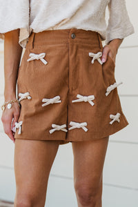 Tied Up in Style Camel Bow Shorts