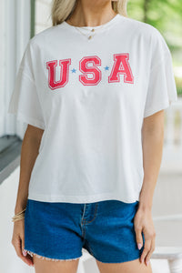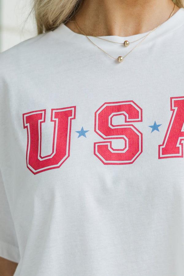 {"id":7403472814138,"title":"USA White Graphic Tee","handle":"usa-white-graphic-tee","description":"\u003cp\u003e\u003cmeta charset=\"utf-8\"\u003eShow off your patriotic side in the cutest way with this USA graphic tee! The bold red lettering and blue star accents pop against the classic white backdrop for a festive and fun look. With its relaxed fit and soft cotton feel, this tee is perfect for Fourth of July barbecues, parades, or just repping your love for the red, white, and blue. Pair it with denim shorts and sneakers for an easy, all-American outfit!\u003c\/p\u003e\n\u003cul\u003e\n\u003cli\u003eRound Neckline\u003c\/li\u003e\n\u003cli\u003eShort Sleeves\u003c\/li\u003e\n\u003cli\u003eUSA Graphic\u003c\/li\u003e\n\u003cli\u003eMaterial has generous amount of stretch\u003c\/li\u003e\n\u003c\/ul\u003e\n\u003cp\u003eBaileigh is wearing the small.\u003c\/p\u003e","published_at":"2025-06-24T08:00:17-04:00","created_at":"2025-05-02T16:23:35-04:00","vendor":"Shop the Mint","type":"","tags":["Clothing","Color_White","DetailedCategory_Graphic","DetailedCategory_Graphic Tees","DetailedCategory_Short Sleeve","Holiday_4th of July","MainCategory_Tops","Na Date_06\/24\/2025","NON_NEW_ARRIVAL","Occasion_Everyday","Pattern_Graphic","Price_$25.00 to $49.99","Price_Under $30.00","Product Photos","Regular Price","Reorder","Season_Summer","Sign Up For Reorder","Site Visible","sub25","Tops","TRUE_OUT_OF_STOCK","Womens"],"price":2600,"price_min":2600,"price_max":2600,"available":false,"price_varies":false,"compare_at_price":null,"compare_at_price_min":0,"compare_at_price_max":0,"compare_at_price_varies":false,"variants":[{"id":40862861328442,"title":"Small \/ White","option1":"Small","option2":"White","option3":null,"sku":"119505-WHT-SM-D","requires_shipping":true,"taxable":true,"featured_image":null,"available":false,"name":"USA White Graphic Tee - Small \/ White","public_title":"Small \/ White","options":["Small","White"],"price":2600,"weight":113,"compare_at_price":null,"inventory_management":"shopify","barcode":"119505-WHT-SM-D","requires_selling_plan":false,"selling_plan_allocations":[],"quantity_rule":{"min":1,"max":null,"increment":1}},{"id":40867384393786,"title":"Medium \/ White","option1":"Medium","option2":"White","option3":null,"sku":"119505-WHT-MD-D","requires_shipping":true,"taxable":true,"featured_image":null,"available":false,"name":"USA White Graphic Tee - Medium \/ White","public_title":"Medium \/ White","options":["Medium","White"],"price":2600,"weight":136,"compare_at_price":null,"inventory_management":"shopify","barcode":"119505-WHT-MD-D","requires_selling_plan":false,"selling_plan_allocations":[],"quantity_rule":{"min":1,"max":null,"increment":1}},{"id":40867384426554,"title":"Large \/ White","option1":"Large","option2":"White","option3":null,"sku":"119505-WHT-LG-D","requires_shipping":true,"taxable":true,"featured_image":null,"available":false,"name":"USA White Graphic Tee - Large \/ White","public_title":"Large \/ White","options":["Large","White"],"price":2600,"weight":159,"compare_at_price":null,"inventory_management":"shopify","barcode":"119505-WHT-LG-D","requires_selling_plan":false,"selling_plan_allocations":[],"quantity_rule":{"min":1,"max":null,"increment":1}},{"id":40867384459322,"title":"X-Large \/ White","option1":"X-Large","option2":"White","option3":null,"sku":"119505-WHT-XL-D","requires_shipping":true,"taxable":true,"featured_image":null,"available":false,"name":"USA White Graphic Tee - X-Large \/ White","public_title":"X-Large \/ White","options":["X-Large","White"],"price":2600,"weight":181,"compare_at_price":null,"inventory_management":"shopify","barcode":"119505-WHT-XL-D","requires_selling_plan":false,"selling_plan_allocations":[],"quantity_rule":{"min":1,"max":null,"increment":1}}],"images":["\/\/shopthemint.com\/cdn\/shop\/files\/119505.USA-White-Graphic-Tee__copy_2_00c1b8b2-d615-4a65-97e9-27d4478f5d35.jpg?v=1749580198","\/\/shopthemint.com\/cdn\/shop\/files\/119505.USA-White-Graphic-Tee.jpg?v=1749580198","\/\/shopthemint.com\/cdn\/shop\/files\/119505.USA-White-Graphic-Tee__copy_3.jpg?v=1749580198","\/\/shopthemint.com\/cdn\/shop\/files\/119505.USA-White-Graphic-Tee__copy_4.jpg?v=1749580195","\/\/shopthemint.com\/cdn\/shop\/files\/119505.USA-White-Graphic-Tee__copy_5.jpg?v=1749580195"],"featured_image":"\/\/shopthemint.com\/cdn\/shop\/files\/119505.USA-White-Graphic-Tee__copy_2_00c1b8b2-d615-4a65-97e9-27d4478f5d35.jpg?v=1749580198","options":["Size","Color"],"media":[{"alt":null,"id":23008156188730,"position":1,"preview_image":{"aspect_ratio":0.667,"height":3000,"width":2000,"src":"\/\/shopthemint.com\/cdn\/shop\/files\/119505.USA-White-Graphic-Tee__copy_2_00c1b8b2-d615-4a65-97e9-27d4478f5d35.jpg?v=1749580198"},"aspect_ratio":0.667,"height":3000,"media_type":"image","src":"\/\/shopthemint.com\/cdn\/shop\/files\/119505.USA-White-Graphic-Tee__copy_2_00c1b8b2-d615-4a65-97e9-27d4478f5d35.jpg?v=1749580198","width":2000},{"alt":null,"id":23008152125498,"position":2,"preview_image":{"aspect_ratio":0.667,"height":3000,"width":2000,"src":"\/\/shopthemint.com\/cdn\/shop\/files\/119505.USA-White-Graphic-Tee.jpg?v=1749580198"},"aspect_ratio":0.667,"height":3000,"media_type":"image","src":"\/\/shopthemint.com\/cdn\/shop\/files\/119505.USA-White-Graphic-Tee.jpg?v=1749580198","width":2000},{"alt":null,"id":23008152059962,"position":3,"preview_image":{"aspect_ratio":0.667,"height":3000,"width":2000,"src":"\/\/shopthemint.com\/cdn\/shop\/files\/119505.USA-White-Graphic-Tee__copy_3.jpg?v=1749580198"},"aspect_ratio":0.667,"height":3000,"media_type":"image","src":"\/\/shopthemint.com\/cdn\/shop\/files\/119505.USA-White-Graphic-Tee__copy_3.jpg?v=1749580198","width":2000},{"alt":null,"id":23008152092730,"position":4,"preview_image":{"aspect_ratio":0.667,"height":3000,"width":2000,"src":"\/\/shopthemint.com\/cdn\/shop\/files\/119505.USA-White-Graphic-Tee__copy_4.jpg?v=1749580195"},"aspect_ratio":0.667,"height":3000,"media_type":"image","src":"\/\/shopthemint.com\/cdn\/shop\/files\/1