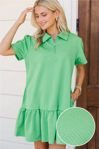 {"id":7423556485178,"title":"Woven Ease Green Textured Babydoll Dress","handle":"woven-ease-green-textured-babydoll-dress","description":"\u003cp\u003eThis green textured babydoll dress is the perfect mix of sporty and sweet! The geometric knit gives it a modern twist, while the collar and zip-front detail keep things fun and casual. We love the flouncy skirt and puff sleeves for an effortless, girly vibe. Just throw on sneakers or sandals and you’re out the door in style!\u003c\/p\u003e\n\u003cul\u003e\n\u003cli\u003eCollared Partial Zip Neckline\u003c\/li\u003e\n\u003cli\u003eDrop Waist Silhouette\u003c\/li\u003e\n\u003cli\u003eShort Sleeves\u003c\/li\u003e\n\u003cli\u003e Textured Look\u003c\/li\u003e\n\u003cli\u003eMaterial has no amount of stretch\u003c\/li\u003e\n\u003c\/ul\u003e\n\u003cp\u003ePoppy is wearing the small. \u003c\/p\u003e","published_at":"2025-07-15T08:00:17-04:00","created_at":"2025-07-01T16:54:58-04:00","vendor":"Shop the Mint","type":"","tags":["Best selling","Clothing","Color_Green","DetailedCategory_Babydoll Dress","Dresses","Hemline_Above-Knee","In Stock","MainCategory_Dresses","NA Date_07\/15\/2025","Neckline_Collared","NON_NEW_ARRIVAL","Occasion_Everyday","Pattern_Solid","Price_$25.00 to $49.99","Product Photos","Regular Price","Reorder","Season_Fall","ShiftingSeasons","Site Visible","Size_Large","Size_Medium","Size_X-Large","Sleeve_Short","sub25","Teachers","Womens"],"price":4800,"price_min":4800,"price_max":4800,"available":true,"price_varies":false,"compare_at_price":null,"compare_at_price_min":0,"compare_at_price_max":0,"compare_at_price_varies":false,"variants":[{"id":40939259461690,"title":"X-Small \/ Green","option1":"X-Small","option2":"Green","option3":null,"sku":"119686-GRN-XS","requires_shipping":true,"taxable":true,"featured_image":null,"available":false,"name":"Woven Ease Green Textured Babydoll Dress - X-Small \/ Green","public_title":"X-Small \/ Green","options":["X-Small","Green"],"price":4800,"weight":204,"compare_at_price":null,"inventory_management":"shopify","barcode":"119686-GRN-XS","requires_selling_plan":false,"selling_plan_allocations":[],"quantity_rule":{"min":1,"max":null,"increment":1}},{"id":40926611996730,"title":"Small \/ Green","option1":"Small","option2":"Green","option3":null,"sku":"119686-GRN-SM","requires_shipping":true,"taxable":true,"featured_image":null,"available":false,"name":"Woven Ease Green Textured Babydoll Dress - Small \/ Green","public_title":"Small \/ Green","options":["Small","Green"],"price":4800,"weight":227,"compare_at_price":null,"inventory_management":"shopify","barcode":"119686-GRN-SM","requires_selling_plan":false,"selling_plan_allocations":[],"quantity_rule":{"min":1,"max":null,"increment":1}},{"id":40934424576058,"title":"Medium \/ Green","option1":"Medium","option2":"Green","option3":null,"sku":"119686-GRN-MD","requires_shipping":true,"taxable":true,"featured_image":null,"available":true,"name":"Woven Ease Green Textured Babydoll Dress - Medium \/ Green","public_title":"Medium \/ Green","options":["Medium","Green"],"price":4800,"weight":249,"compare_at_price":null,"inventory_management":"shopify","barcode":"119686-GRN-MD","requires_selling_plan":false,"selling_plan_allocations":[],"quantity_rule":{"min":1,"max":null,"increment":1}},{"id":40934424608826,"title":"Large \/ Green","option1":"Large","option2":"Green","option3":null,"sku":"119686-GRN-LG","requires_shipping":true,"taxable":true,"featured_image":null,"available":true,"name":"Woven Ease Green Textured Babydoll Dress - Large \/ Green","public_title":"Large \/ Green","options":["Large","Green"],"price":4800,"weight":272,"compare_at_price":null,"inventory_management":"shopify","barcode":"119686-GRN-LG","requires_selling_plan":false,"selling_plan_allocations":[],"quantity_rule":{"min":1,"max":null,"increment":1}},{"id":40934424903738,"title":"X-Large \/ Green","option1":"X-Large","option2":"Green","option3":null,"sku":"119686-GRN-XL","requires_shipping":true,"taxable":true,"featured_image":null,"available":true,"name":"Woven Ease Green Textured Babydoll Dress - X-Large \/ Green","public_title":"X-Large \/ Green","options":["X-Large","Green"],"price":4800,"weight":295,"compare_at_price":null,"inventory_management":"shopify","barcode":"119686-GRN-XL","requires_selling_plan":false,"selling_plan_allocations":[],"quantity_rule":{"min":1,"max":null,"increment":1}}],"images":["\/\/shopthemint.com\/cdn\/shop\/files\/759856258-artboard-27-copy-2-2x-100.jpg?v=1752159527","\/\/shopthemint.com\/cdn\/shop\/files\/119686.Woven-Ease-Green-Textured-Babydoll-Dress.jpg?v=1752159527","\/\/shopthemint.com\/cdn\/shop\/files\/119686.Woven-Ease-Green-Textured-Babydoll-Dress__copy_1.jpg?v=1752159527","\/\/shopthemint.com\/cdn\/shop\/files\/119686.Woven-Ease-Green-Textured-Babydoll-Dress__copy_2.jpg?v=1752159527","\/\/shopthemint.com\/cdn\/shop\/files\/119686.Woven-Ease-Green-Textured-Babydoll-Dress__copy_4.jpg?v=1752159527"],"featured_image":"\/\/shopthemint.com\/cdn\/shop\/files\/759856258-artboard-27-copy-2-2x-100.jpg?v=1752159527","options":["Size","Color"],"media":[{"alt":null,"id":23083820679226,"position":1,"preview_image":{"aspect_ratio":0.667,"height":1601,"width":1068,"src":"\/\/shopthemint.com\/cdn\/shop\/files\/759856258-artboard-27-copy-2-2x-100.jpg?v=1752159527"},"aspect_ratio":0.667,"height":1601,"media_type":"image","src":"\/\/shopthemint.com\/cdn\/shop\/files\/759856258-artboard-27-copy-2-2x-100.jpg?v=1752159527","width":1068},{"alt":null,"id":23074508177466,"position":2,"preview_image":{"aspect_ratio":0.667,"height":3000,"width":2000,"src":"\/\/shopthemint.com\/cdn\/shop\/files\/119686.Woven-Ease-Green-Textured-Babydoll-Dress.jpg?v=1752159527"},"aspect_ratio":0.667,"height":3000,"media_type":"image","src":"\/\/shopthemint.com\/cdn\/shop\/files\/119686.Woven-Ease-Green-Textured-Babydoll-Dress.jpg?v=1752159527","width":2000},{"alt":null,"id":23074508046394,"position":3,"preview_image":{"aspect_ratio":0.667,"height":3000,"width":2000,"src":"\/\/shopthemin